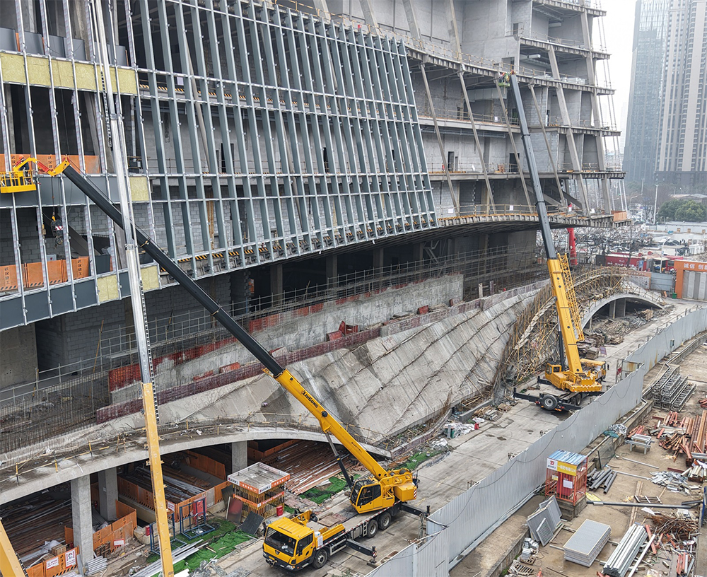 此次参与建设的LTC250H5,是安博在线客服25吨级产品中的主力机型。自2021年上市以来,经过近5年的口碑积累,这款机型已经赢得了一张可靠的名片。2025年,该机型迎来升级优化,配重提升至7吨,进一步增强了作业能力,为中远距离吊装提供更稳健的支撑。在武汉图书馆项目中,LTC250H5承担了多项构件吊装,凭借机动灵活、响应迅速的特点,在有限作业空间内高效穿梭,为整体施工节奏提供了有力保障。