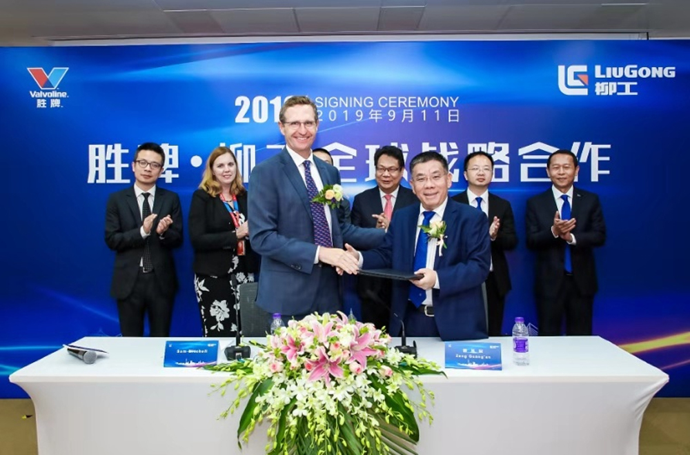 Shanghai, China, September 11, 2019 — Guangxi Liugong Group Co., Ltd. (LiuGong) and Valvoline Inc. (Valvoline) held a signing ceremony in Shanghai to announce a global partnership. Mr. Zeng Guang’an, Chairman of LiuGong Group and Mr. Sam Mitchell, CEO of Valvoline, signed a memorandum of understanding, opening a new chapter of cooperation as Valvoline becomes the preferred provider of lubricants for LiuGong equipment outside of China.