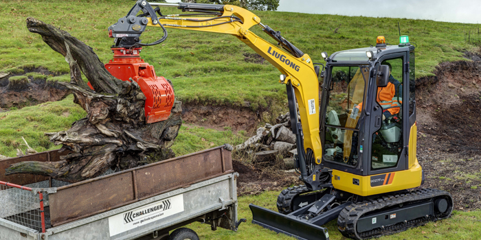 - When space is tight, the neat compact design with zero tailswing and boom swing gets you to work. With the upper frame and counter-weight sitting within the width of the tracks the 9027FZTS can squeeze into the tightest jobsites without damaging the machine or surrounding environment. The agile offset boom swing control allows the 9027FZTS to deliver even greater versatility allowing you to dig right alongside the tracks. Simple push button selection and trackwheel control enable the boom to swing 74-degrees to the left and 54.5-degrees to the right. Whatever the space challenge, the 9027FZTS takes it in its stride.