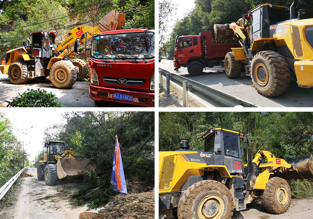 抢险队员不分昼夜,高强度连续“作战”。使得黄岩宁大线沿线的村民深受感动,他们自发的参与到道路清障作业中,协助浙江柳瑞打通宁大线。在黄岩,从10日晚6点,他们抵达黄岩,5天时间,他们与黄岩公路人一起坚守一线,日夜奋战,共计处理塌方50多处,清理土石方450多车,直到西部山区农村公路全部打通。