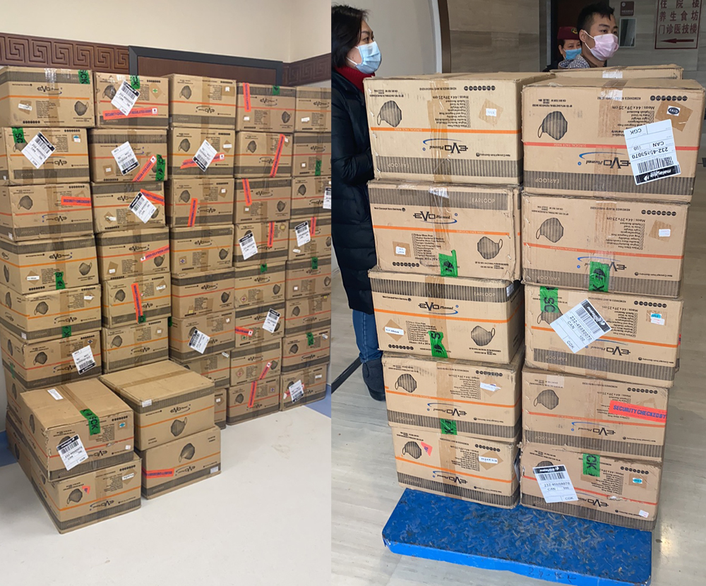 今天捐给柳州市的50000个口罩,已送到中医院的仓库