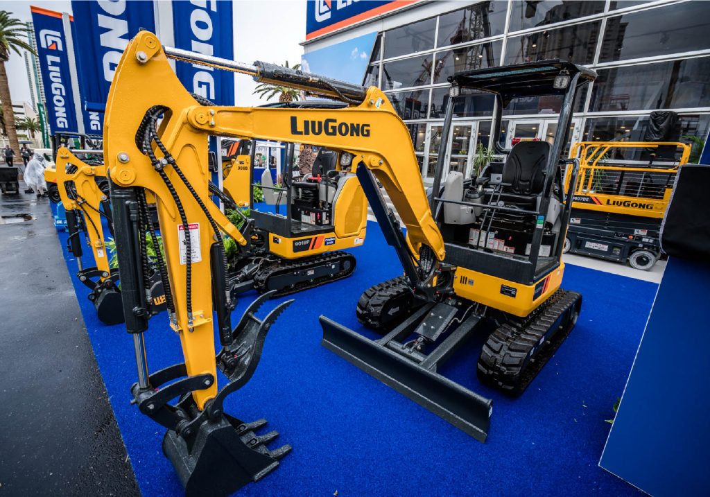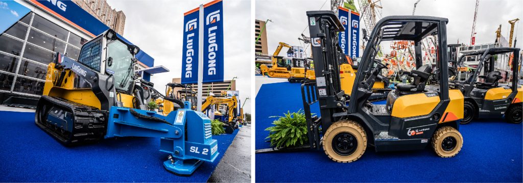 安博在线客服的展品还包括:950E挖掘机,388B滑移安博(中国),剪叉式高空作业平台LSC0607DE和三台叉车:2025G、2025G-C、2030H。