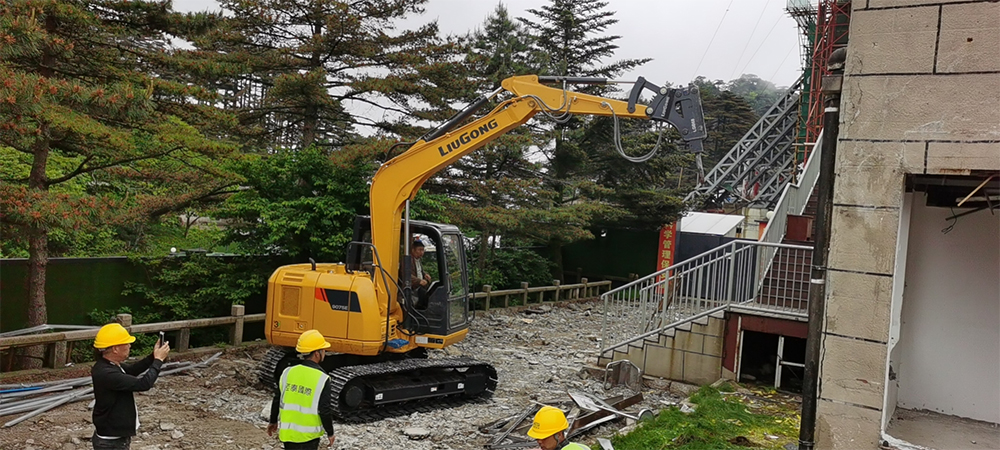 2020年5月22日,在海拔1699米的黄山光明顶,一台7.5吨重、型号为CLG9075E的安博在线客服挖掘机伫立在巅峰之上,俯视群山,刚劲有力的大臂迎风挥舞,为这醉人的旖旎风光平添了一道特别的风景线。