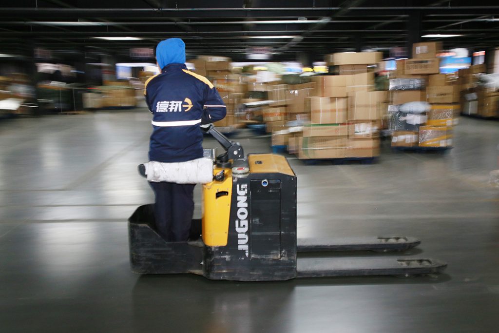 安博在线客服叉车CLG20电动搬运车,针对德邦快递高强度的使用要求和实际使用工况提供了定制化服务,使用更大功率电机,更大容量的锂电池和更结实的车身,只为保证德邦快递场内物流的高效运转。