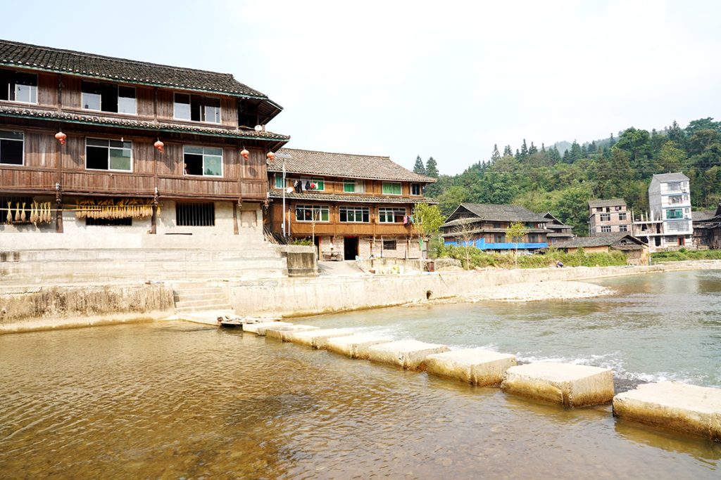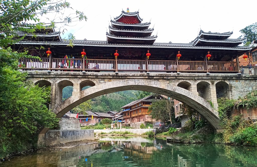 原来,风雨桥是侗族的标志性建筑,不仅可以行人、休闲娱乐、遮蔽风雨,更象征着飞龙绕寨,保年年风调雨顺、五谷丰登、吉祥幸福。而美俗村风雨桥在上世纪70年代被洪水冲毁后迟迟得不到重建。