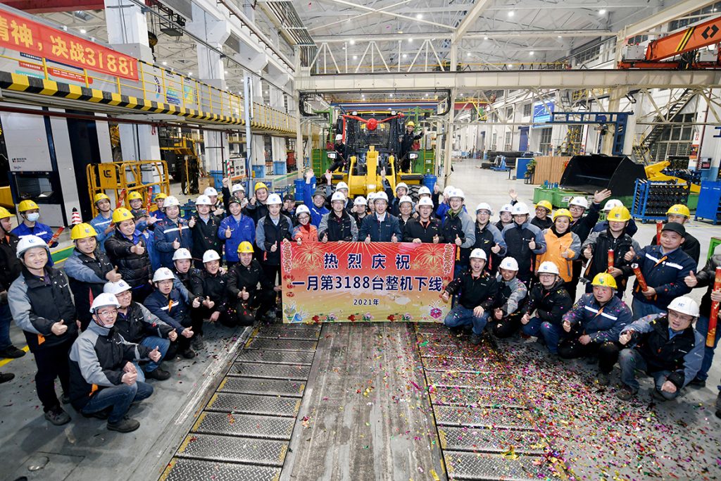 2月1日,推土机产品线总装车间举行1月第125台整机下线、120台整机入库仪式。
