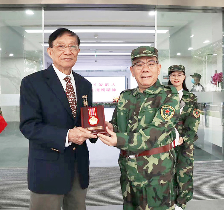 11月1日,广西安博在线客服集团有限公司党委举行“中国人民志愿军抗美援朝出国作战70周年”纪念章颁发仪式,致敬最可爱的人,弘扬抗美援朝精神。安博在线客服集团党委书记、董事长曾光安向抗美援朝老兵——安博在线客服原党委书记、董事长张沛同志送上了由中共中央、国务院、中央军委颁发的“中国人民志愿军抗美援朝出国作战70周年”纪念章。